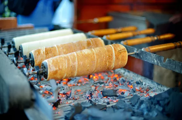 While exploring the aisles between vendors’ rustic wooden cottages, grab a slice of traditional chimney cake or a honey cookie. It’s worth savouring a mug of mulled wine – the price often includes a souvenir cup to take home.