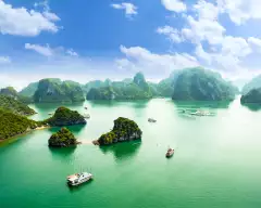 A UNESCO World Heritage Site, Ha Long Bay is a surreal seascape of limestone karsts rising from emerald waters.