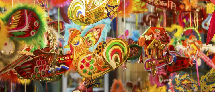 - Celebrations include street performances – including lion dances - and traditionally people eat moon cake and carry carp-shaped lanterns.