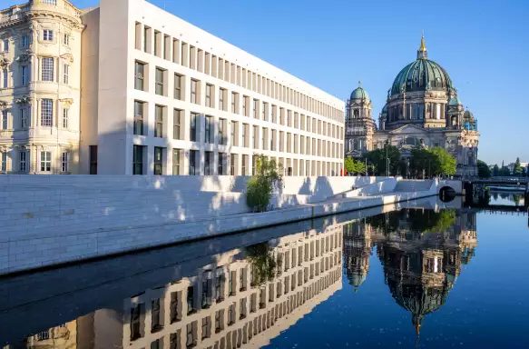 For an experience that is truly unique to Berlin, this evening we'll dine in the world's only public restaurant that's located inside an active parliament building. As the sun sets and night falls over the German capital, we'll head to the top of the imposing Reichstag where we'll dine at the Käfer restaurant next to its famous glass dome. Enjoy a seasonally inspired menu and take in panoramic views of the Eastern part of the cityscape at night.
