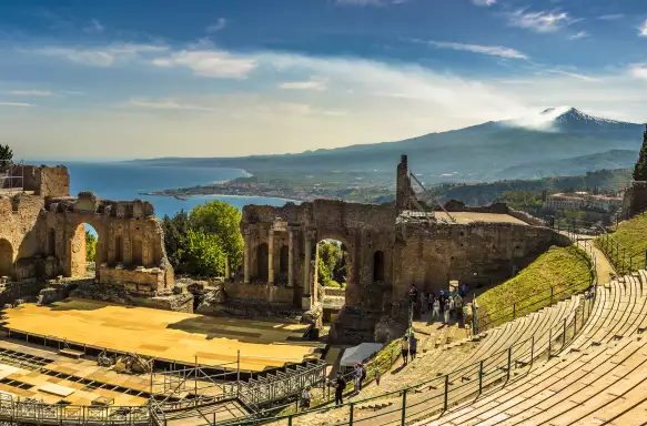 Afterwards, we’ll make our way towards Taormina on Sicily’s eastern coast, where we’ll spend the next three nights at either the four-star Albatros Hotel in Letojanni or the four-star Hotel Sant Alphio Garden in Giardini Naxos.