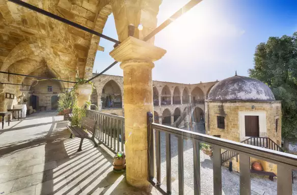 Today we’ll explore the world’s last divided capital, Nicosia, once a small town established by the Ptolemaic dynasty in 300 BC. On our guided tour of the old town, we'll see the impressive Venetian city walls – Nicosia was a walled city for centuries – and the superbly preserved Kyrenia gate, adorned with inscriptions left by past rulers, including the British. Discover the main square, the Bandabuliya covered bazaar, and the staggering Venetian column, transported from the ruins of Salamis. We'll marvel at the mammoth Selimnye Mosque, which is visible from both sides of the capital and its most historically significant mosque. If it looks remarkably like a church, it’s because it was formerly St Sophia, a 13th-century Roman Catholic cathedral, before the Ottoman invasion introduced the twin minarets that tower above.