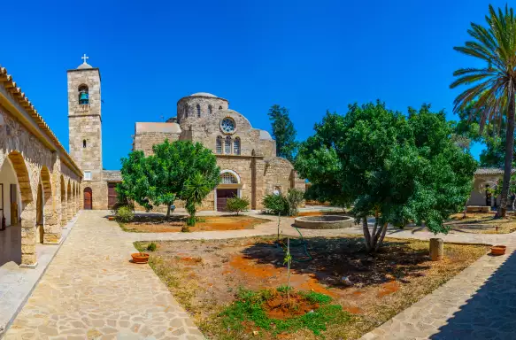 Today, we'll embark on a full-day tour of northeastern Cyprus, starting with the Monastery of St Barnabus. Once one of the most prominent Christian sites on the island, the church is built over the tomb of St Barnabus, one of the very earliest followers of Jesus, a leader of the early church and the founder of the Cypriot Church.