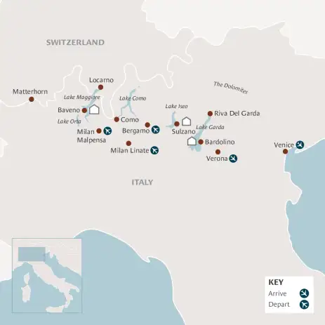 This trip is ideal for nature lovers, history enthusiasts and those looking for both relaxation and adventure. Travelling in smaller groups as part of our signature tour, offers a more exclusive and personalised experience. Immerse yourself in the exquisite beauty, rich culture, and serene landscapes of the Italian Lakes.