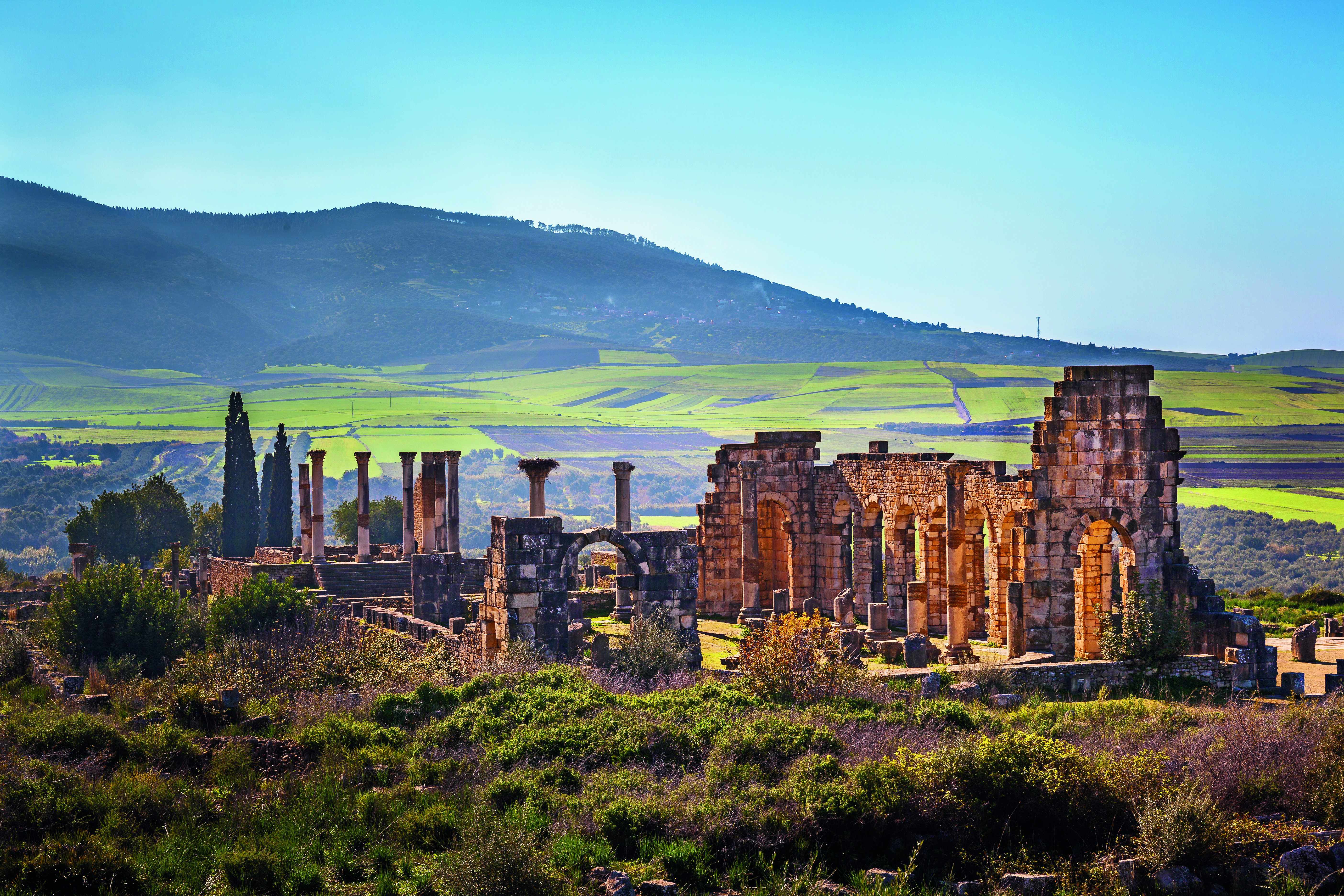 After breakfast, we drive through fertile farmland and olive groves up into the hills. As we descend, the spectacular Roman ruins of Volubilis is laid out before us – the best-preserved Roman ruins in Morocco and a UNESCO World Heritage site. We step back through 2,000 years of history as we explore Volubilis with our local guide.