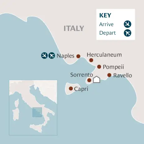 On arrival in Naples we'll transfer to Sorrento, where we'll stay for seven nights.