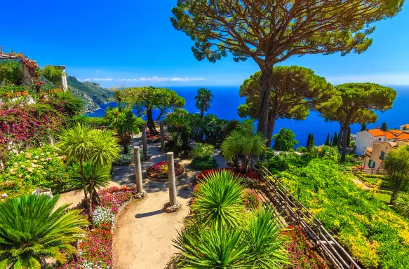 Experience the sublimely beautiful Amalfi coast, and visit the exquisite Rufolo Gardens in Ravello.