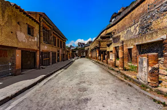 We'll follow a guide around this spectacular UNESCO World Heritage Site they'll bring the history of Herculaneum to life. As a small resort town, it has a more intimate feel and the buildings here are even more well-preserved. The frescoes and mosaics still display their vibrant colours as the volcanic ash that fell vacuum-sealed the city, ensuring spectacular preservation.