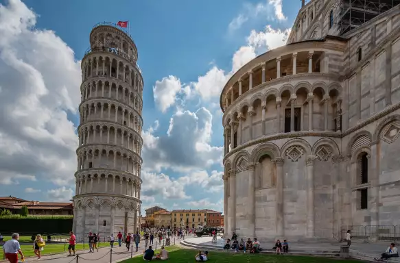 Then we’ll take the short drive to Pisa where nothing can prepare the visitor for the bizarre leaning tower! Completed in 1372, the white marble cylinder is a Romanesque bell tower which tilts at a 3.97-degree angle. At its worst, it leaned over 5.5 degrees! Famous since the dawn of tourism, today it remains one of the must-see buildings on earth. To its right, you’ll notice the incredible domed roof of the Baptisterium which also leans (though considerably less) - head inside to see its beautiful, yet simple, interior and visit the upper floor for amazing views over Pisa.