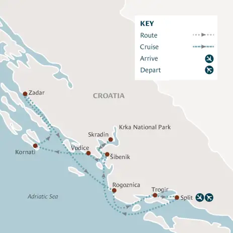 Experience the treasures of Northern Croatia, seeing Split and Emperor Diocletian’s monumental palace, medieval Šibenik and Trogir and the natural waterfalls of Krka Valley National Park. As well as soaking up the history and culture, take a dip in the sea in the idyllic bays of the Adriatic. Cruise through the national park of the Kornati archipelago, and marvel at the sea organ of Dalmatia's ancient capital, Zadar.