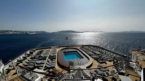Join us as we step on board the Celestyal Journey cruise ship for a magical journey of the Med and beyond. The Celestyal ship is a mid-size ocean cruise liner and has everything you need to relax and refresh whilst you are not exploring off ship. Refreshing swimming pools, wellbeing and spa centres, entertainment, an array of restaurants and bars await you on board.