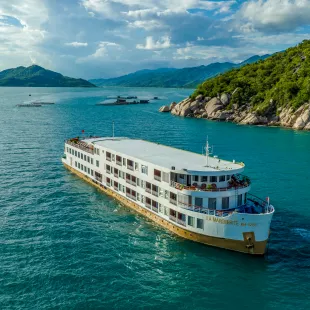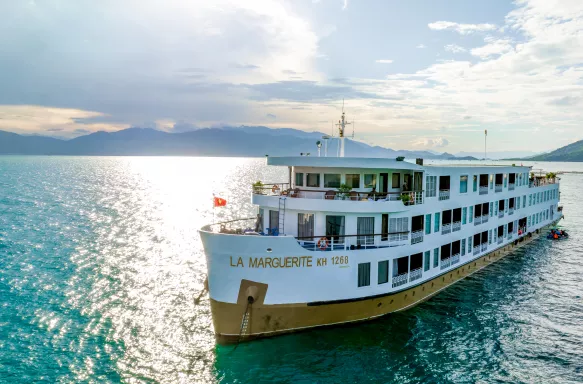 Your cruise is the perfect way to discover and understand this fascinating and rapidly emerging corner of the world – a serene experience immersing you in its people and customs at a wonderfully gentle pace. After a stop at the picturesque Cholon market and a lacquer workshop, you board the superb four-star RV La Marguerite. Your highly professional crew, imbibed by the unique service ethic you find everywhere here, ensure you settle in to your spacious and beautifully appointed cabin.