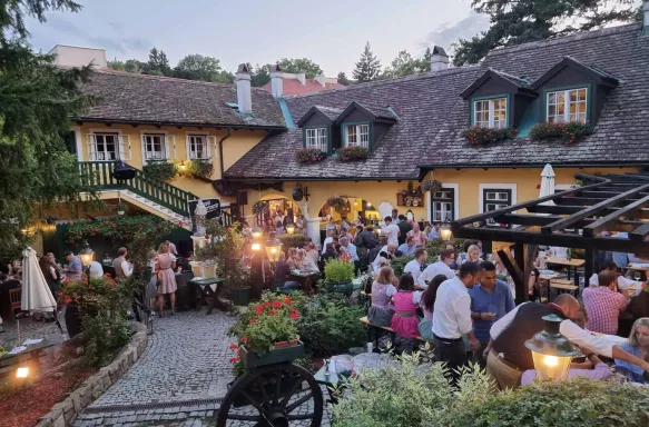 Tonight, we'll enjoy a traditional Heurigen evening at a nearby restaurant, the Die Wiender Heurige Wolff, where we will be celebrating the latest wine production*. You can experience the taste of this year's vintage with a wine tasting while relishing in the exquisite Viennese cuisine.