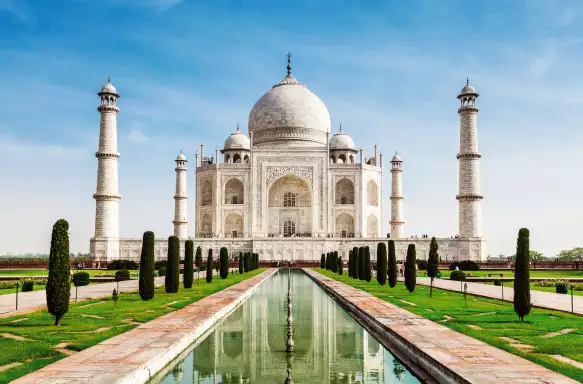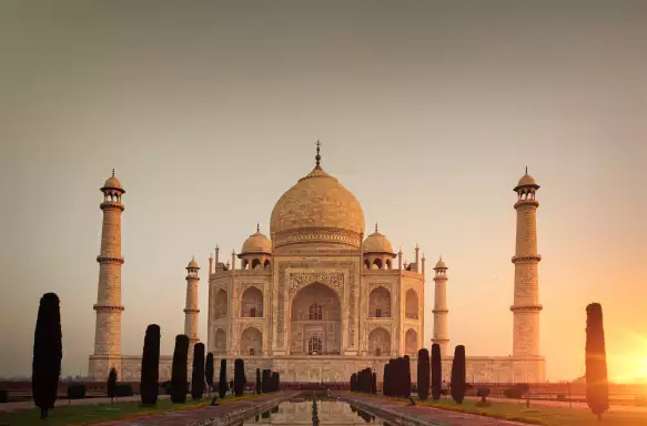 As the sun rises above the Taj Mahal, its white marble radiates a warm glow. The mist begins to rise from the Yamuna River and the morning sun casts an orange haze over its surface, creating a dazzling scene that makes the water appear to be alight. The Taj Mahal, with its exquisite beauty, rich history, and impeccable design, is one of the wonders of the world and stands as one of the greatest monuments. We'll have ample time to explore its grand façade from every angle before returning to the hotel for breakfast.