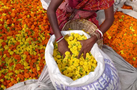 After a restful night and a hearty breakfast, we rejoin our guide for some more sightseeing in Kolkata. We’ll begin at the bustling Flower Market, where vibrant garlands and floral decorations are crafted for temples, weddings, and daily rituals. The colours and energy here offer a vivid glimpse into local life.