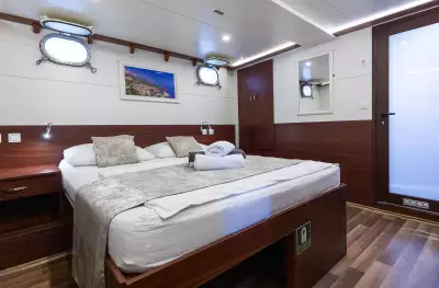 The Main Deck serves as an accommodation deck. Here, you'll find 10 Category A cabins designed with both comfort and style in mind. These cabins can be configured as double or twin beds, making them suitable for a variety of guest preferences. This deck has windows that offer views of the sea and is a prime location for cabins, with easy access to the dining and outdoor spaces.