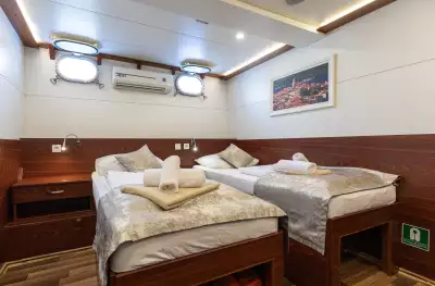 The Lower Deck is also an accommodation area, featuring 8 additional cabins. The Lower Deck is designed to provide quiet, private spaces, while still offering convenient access to the ship's other amenities. Although located on a lower level, these Category B cabins are well-equipped and are slightly more spacious, offering a restful retreat at the end of the day.