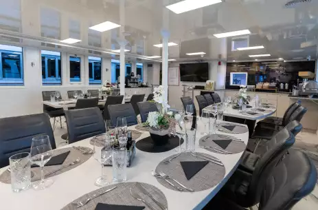 Start your day with a fulfilling breakfast buffet, offering both hot and cold options. Our half-board yacht cruises include select lunches and dinners, featuring a set 3 or 4 course menu in our elegant onboard restaurant. Enjoy a variety of dishes, including local flavours and fresh seafood. A highlight of the experience is the Captain's Dinner, where our chefs prepare an extra special menu for a truly memorable evening.