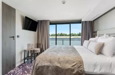 Enjoy the comfort of this cabin, complete with floor to ceiling windows, a French-style balcony for stunning river views, and a modern ensuite bathroom.