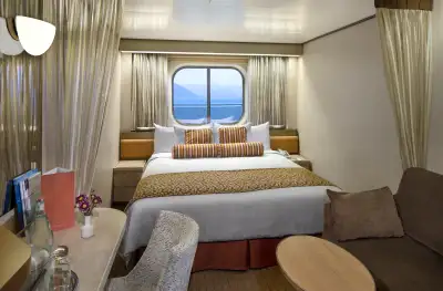 Offering up to 319 sq. ft. of comfort, Ocean-View Staterooms feature a queen-size convertible bed, private bathroom, and serene sea views through porthole or window options.