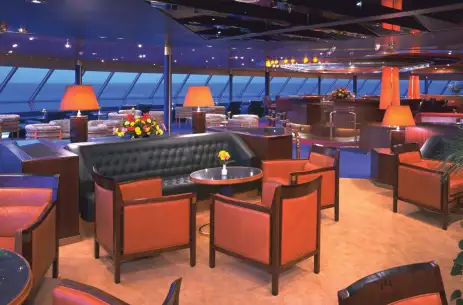 A hub of activity and leisure, the Upper Promenade Deck spans two floors of the Dining Room, an art studio, library, café, games room, casino, and shops. The atrium and World Stage provide lively spaces for gathering and entertainment, while the bar offers a perfect spot for a relaxing drink.
