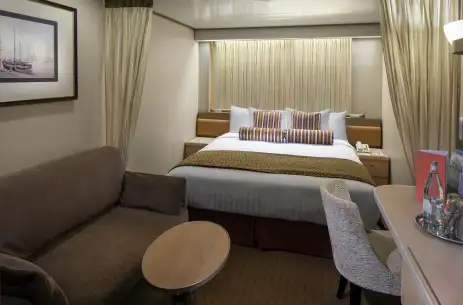 Ranging up to 293 sq. ft., Interior Staterooms offer a peaceful retreat with a queen-size convertible bed, private bathroom, and all the essentials for a cosy stay.