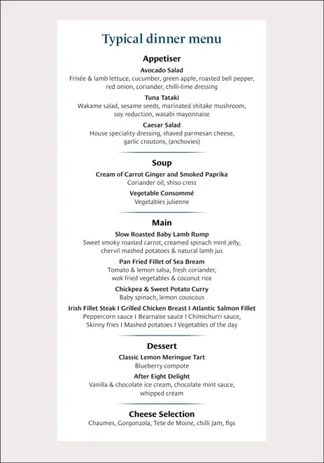 Please note that the example bar menu provided here is not applicable to every cruise and the selection of drinks available and prices advised will vary from ship to ship.