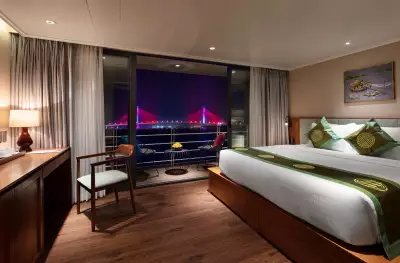 Our Deluxe Staterooms offer comfort and style, featuring large open windows with a private balcony with seating, complimentary bathrobes and slippers.
